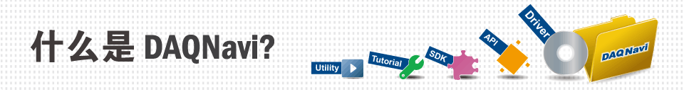 现在研华推出名为 DAQNavi 的新一代驱动程序套件。这款最新的驱动程序套件提供数据捕获设备的驱动程序及开发相关的 SDK,包括组件型函式库、范例程序代码、说明文件(包括手册及教学影片),以及包含多项易于使用的整合式通用程序。DAQNavi 支持研华各类的 PCI Express、PCI、USB、PC/104 及 PCI-104 数据采集产品。