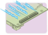 • 1路DisplayPort: 可以转换出HDMI、LVDS、DVI、TV-Out、S-Video、VGA或eDP显示接口