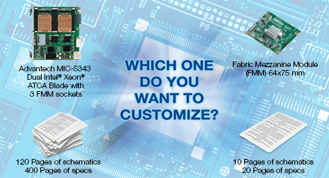 The Fabric Mezzanine Modules (FMM) concept is one of the key elements in Advantech’s Customized COTS strategy. FMMs are a new denominator for personalizing a common platform at the blade level and they scale extremely well for both I/O and acceleration functions.